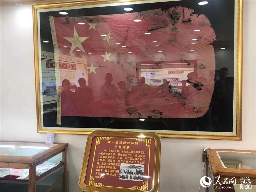 陳列館中的文物——第一面扛進(jìn)拉薩的五星紅旗。人民網(wǎng) 劉沛然攝