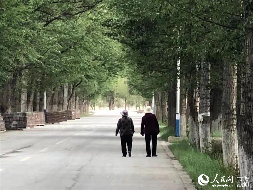 莫河駝場(chǎng)里一起散步的老人。人民網(wǎng) 劉沛然攝