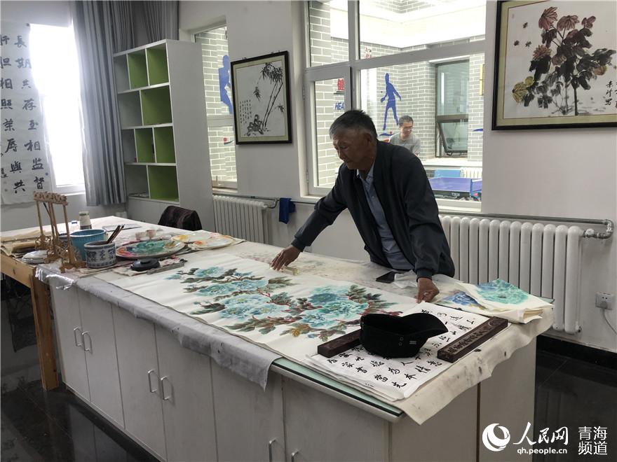 正在社區(qū)綜合服務(wù)中心作畫(huà)的居民。人民網(wǎng) 劉沛然攝