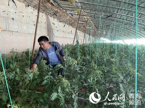 盛國超正在檢查西紅柿苗長勢。人民網(wǎng) 陳明菊攝