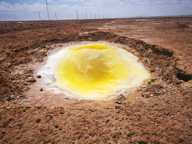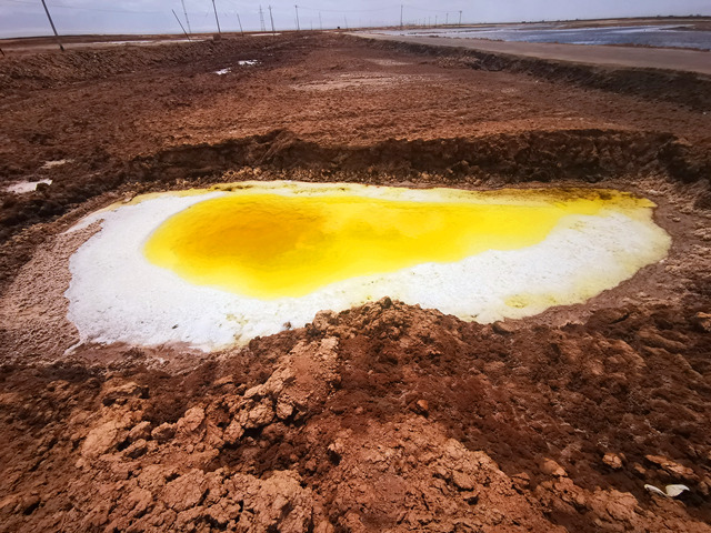 近日,青海省茫崖市官方在花土溝鎮(zhèn)小鴨湖境內(nèi)發(fā)現(xiàn)了兩個黃色的小泉,白色的鹽堿殼環(huán)繞啤酒黃水如同剛剛煮好的荷包蛋。兩眼泉水是春夏季地下淡水上升與鹽堿地表融合形成的,屬堿水性質(zhì)。