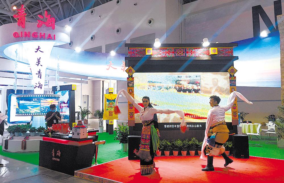 圖為青海展館正在進行歌舞表演。 青海日報記者 田得乾攝