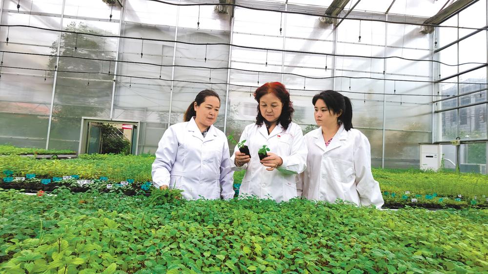 張錦梅(中)手中的丁香寄托著綠色的希望。 青海日?qǐng)?bào)記者 賈泓 攝