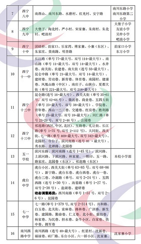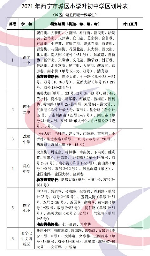 實(shí)用收藏!2021年西寧市城區(qū)小學(xué)升初中學(xué)區(qū)范圍公示