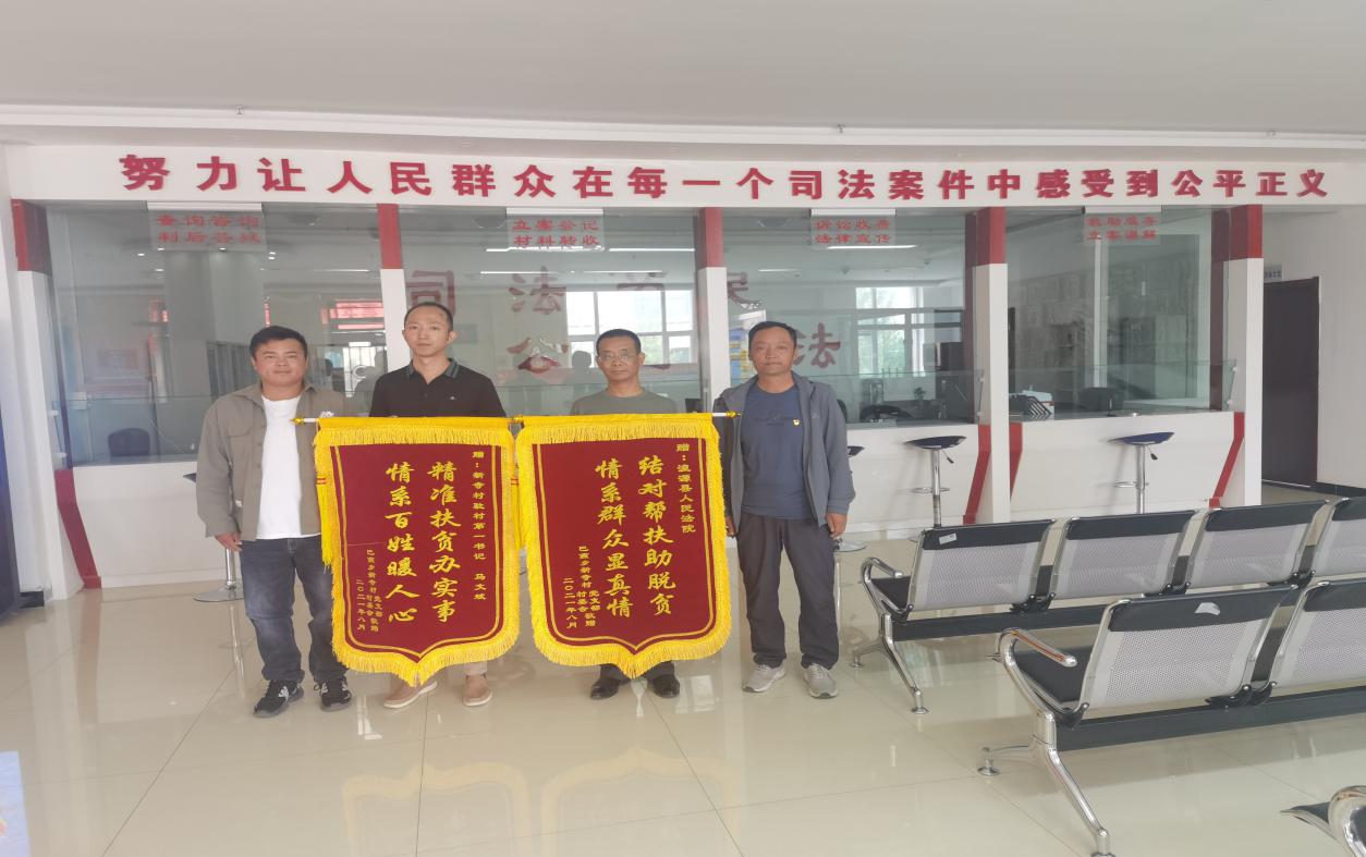 湟源縣巴燕鄉(xiāng)新寺村“兩委”主要負(fù)責(zé)人為湟源縣法院送來錦旗。湟源縣委宣傳部供圖