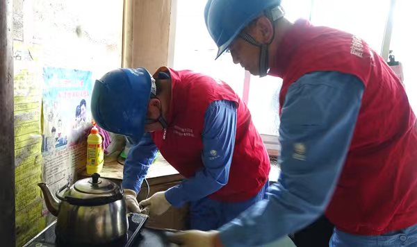 國(guó)家電網(wǎng)青海電力三江源(海東平安)共產(chǎn)黨員服務(wù)隊(duì)走進(jìn)平安區(qū)沙溝村進(jìn)行用電安全隱患排查服務(wù)。馬彩虹攝