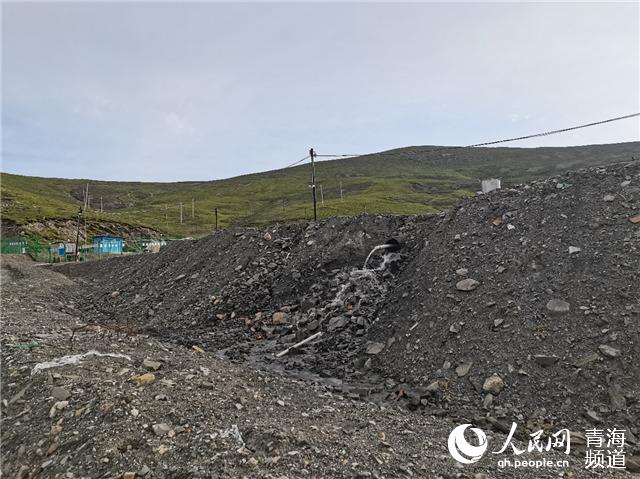 因季節(jié)和降雨原因,采坑周圍山上依然有流水。人民網(wǎng) 甘海瓊攝