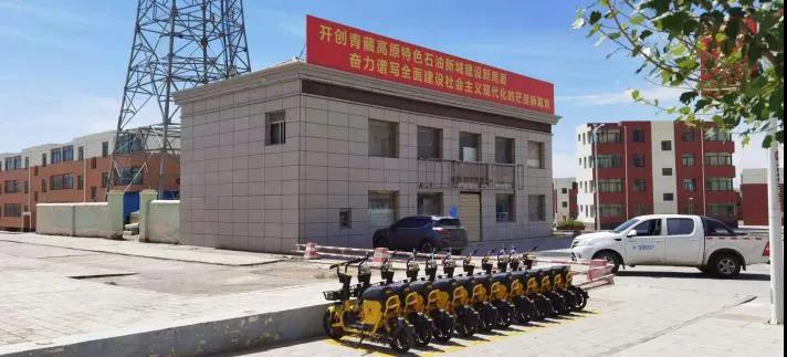 停放在站點(diǎn)的共享電單車。茫崖市工業(yè)和信息化局供圖