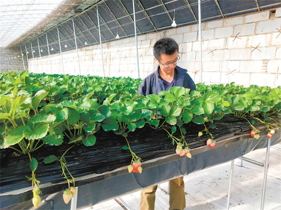 數(shù)字化種植草莓。本報記者 潘玲 攝