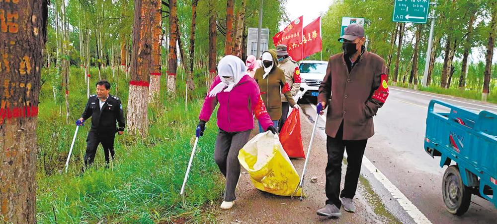 生態(tài)管護(hù)員、民兵分隊(duì)、民警協(xié)同清理整治109國道線環(huán)境衛(wèi)生。通訊員 李文博攝