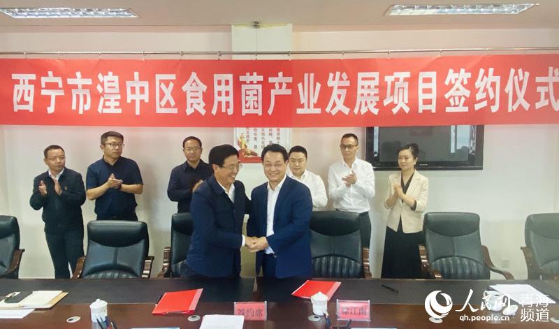 西寧市湟中區(qū)食用菌產(chǎn)業(yè)發(fā)展項(xiàng)目簽約儀式。人民網(wǎng) 蔣瑩攝