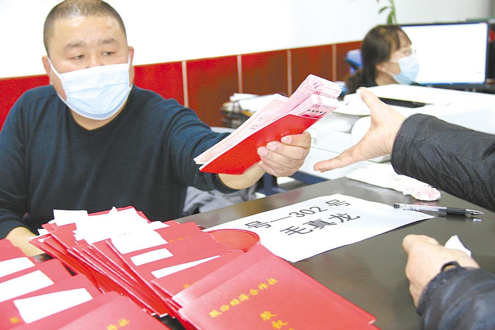 中莊村年底向股份經(jīng)濟(jì)合作社股東分紅。
