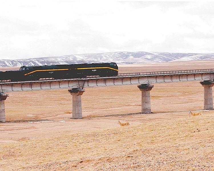 藏羚羊已習(xí)慣了火車從身邊呼嘯而過。