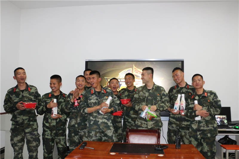 武警官兵們?cè)谲姞I(yíng)歡度中秋。仵玉鵬攝