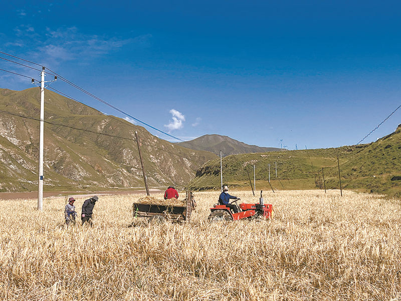 近年來(lái),玉樹(shù)州始終將農(nóng)牧業(yè)作為基礎(chǔ)產(chǎn)業(yè)和特色產(chǎn)業(yè)進(jìn)行培育。圖為豐收時(shí)節(jié)村民們正在忙碌著收割、搬運(yùn)青稞。青海日?qǐng)?bào)記者 程宦寧 攝