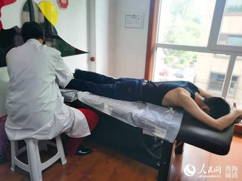 醫(yī)療類(lèi)社工為轄區(qū)低保居民、殘疾群眾進(jìn)行中醫(yī)理療。人民網(wǎng) 馬建輝攝