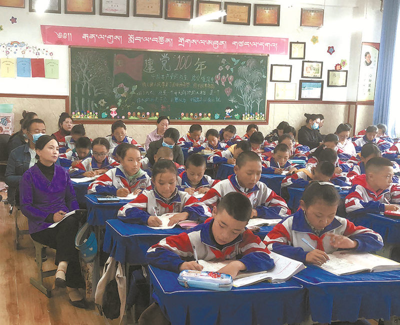 玉樹市第二完全小學(xué)聽課、磨課、評(píng)課體系不斷成熟,這是一堂三年級(jí)語文課,老師們前來旁聽。青海日?qǐng)?bào)記者 牛玉嬌 程宦寧 攝