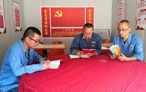 公司組織電網(wǎng)建設(shè)項(xiàng)目臨時(shí)黨支部黨員學(xué)習(xí)。李永鵬攝