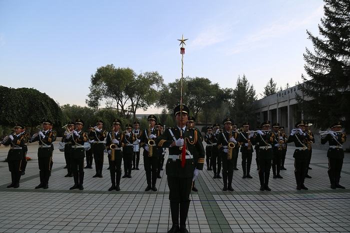 軍樂隊奏《義勇軍進行曲》。劉進峰攝