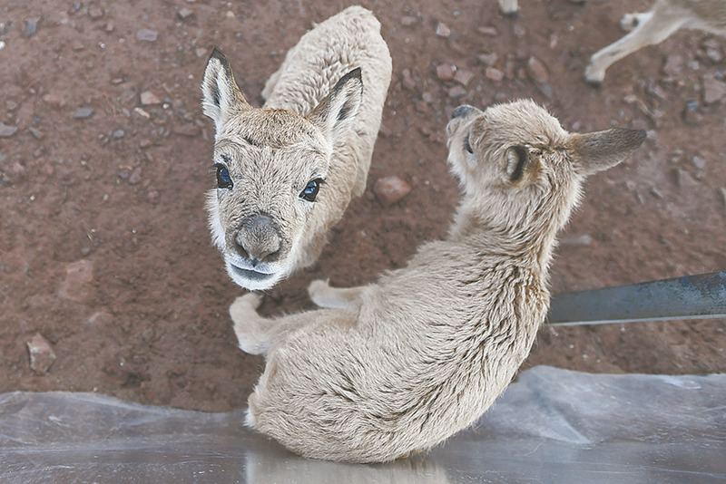 在可可西里國家級自然保護(hù)區(qū)卓乃湖保護(hù)站拍攝的兩只藏羚羊幼仔(2020年7月7日攝)。 新華社記者 薛玉斌 攝