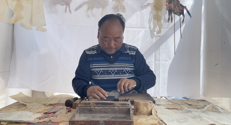 土門關(guān)皮影藝人張永全是青海省級(jí)非物質(zhì)文化遺產(chǎn)項(xiàng)目河湟皮影制作技藝的代表性傳承人,河湟皮影制作技術(shù)具有民間傳承性,用牛皮制作的人物、山、水、花鳥、宮殿栩栩如生。