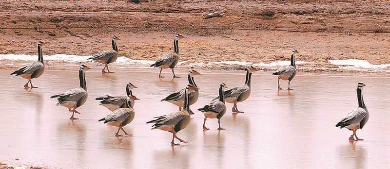 鳧游在如絲綢般潤滑的水面,斑頭雁夫婦羞澀的愛情,蕩漾在扎陵湖的溫柔鄉(xiāng)。張多鈞攝