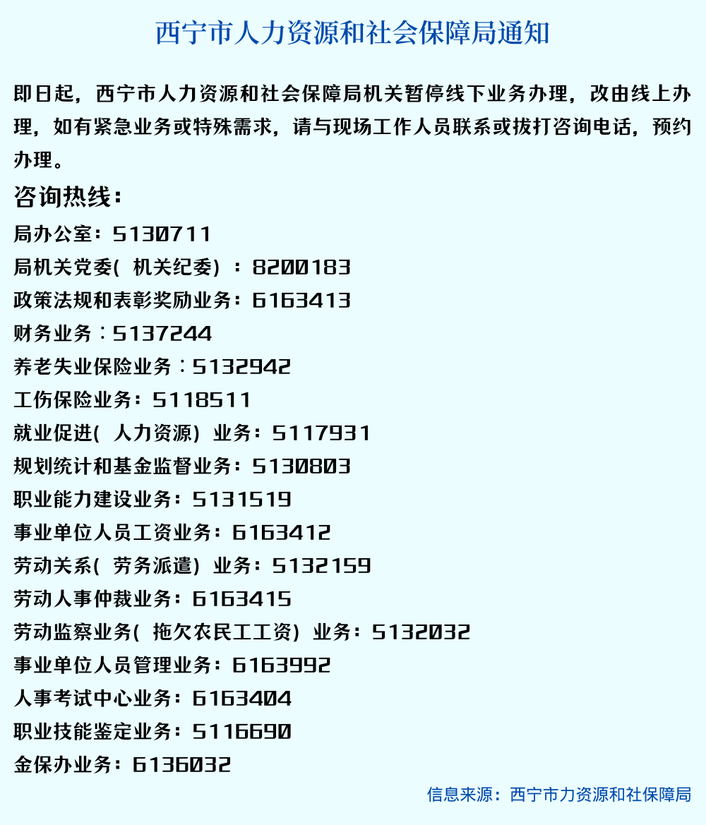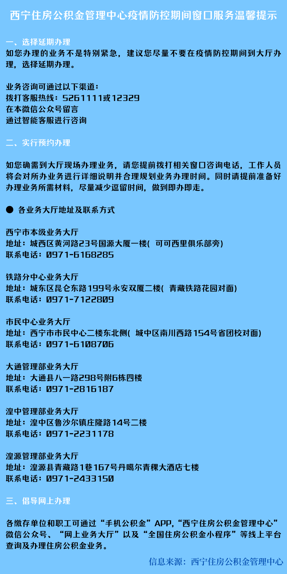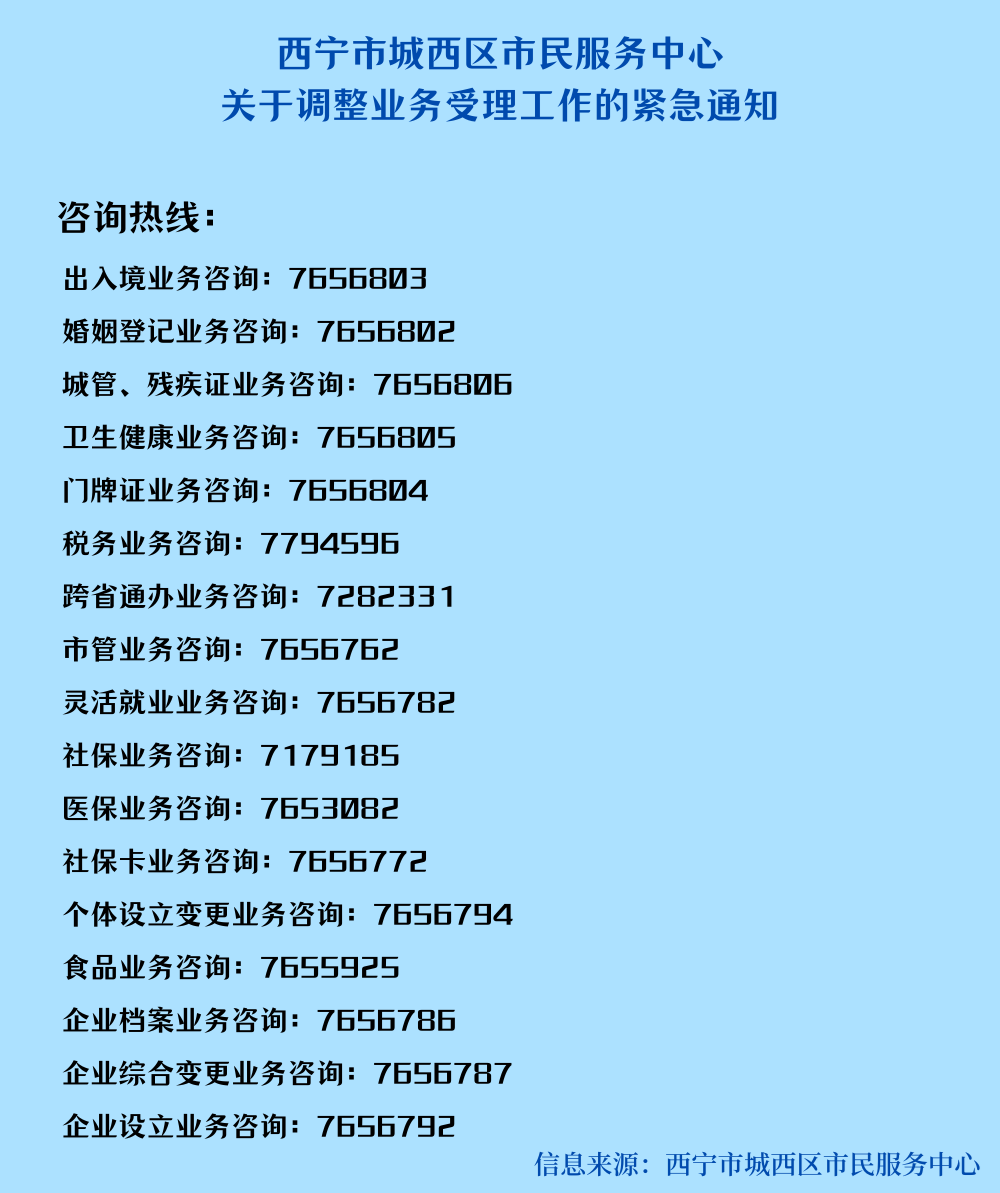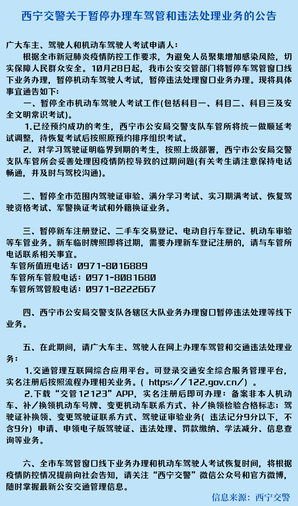 人民網(wǎng)西寧10月28日電 根據(jù)西寧市新冠肺炎疫情防控工作要求,為避免人員聚集增加感染風(fēng)險(xiǎn),切實(shí)保障人民群眾安全。10月28日起,西寧市公安交管部門、西寧住房公積金管理中心、西寧市城西區(qū)市民服務(wù)中心、西寧市人力資源和社會(huì)保障局相繼發(fā)布關(guān)于疫情期間特殊辦公的公告,具體情況如下圖: