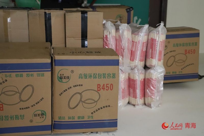 餐飲店儲(chǔ)備的一次性餐盒、筷子等物資。人民網(wǎng) 楊啟紅攝