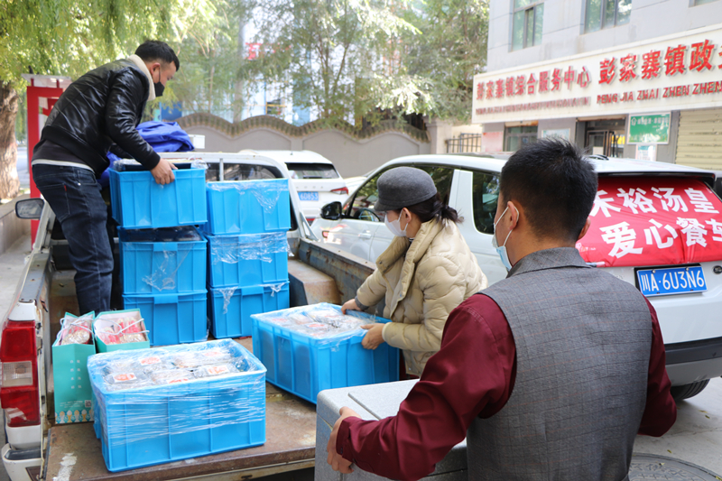 10月29日中午,西寧市城西區(qū)彭家寨鎮(zhèn)世通名城核酸檢測采樣點(diǎn),核酸檢測工作正緊張有序地進(jìn)行,就在醫(yī)護(hù)人員、彭家寨鎮(zhèn)政府及相關(guān)防疫人員忙得熱火朝天之際,附近一家餐飲店的工作人員給所有工作人員送來了免費(fèi)午餐,現(xiàn)場防疫人員分批用餐,熱氣騰騰的米飯?zhí)撞拖阄端囊纾o寒風(fēng)中的采樣點(diǎn)增添了不少溫暖。