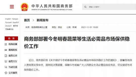 今天,商務部一則通知刷屏。我們不妨看看,通知標題是《關于做好今冬明春蔬菜等生活必需品市場保供穩(wěn)價工作的通知》。內容方面強調,保障今冬明春廣大人民群眾生活必需品供應充足,切實做好市場保供穩(wěn)價工作。