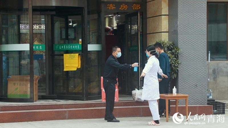 隔離點(diǎn)醫(yī)護(hù)人員前來取餐。人民網(wǎng) 張皓芃攝