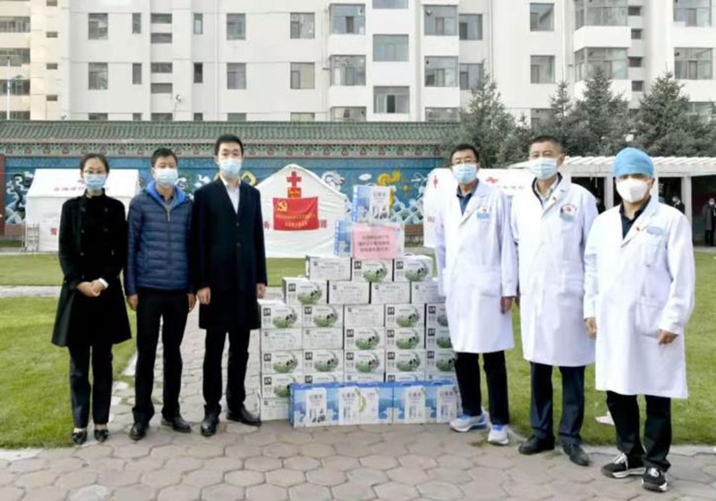 轄屬西寧市分行向青海大學(xué)附屬醫(yī)院,贈送三百箱牛奶、酸奶,慰問奮戰(zhàn)在疫情防控一線的醫(yī)務(wù)人員,感謝他們?yōu)橐咔榉揽刂械娜σ愿,為守護(hù)人民生命安全所作出的貢獻(xiàn)。