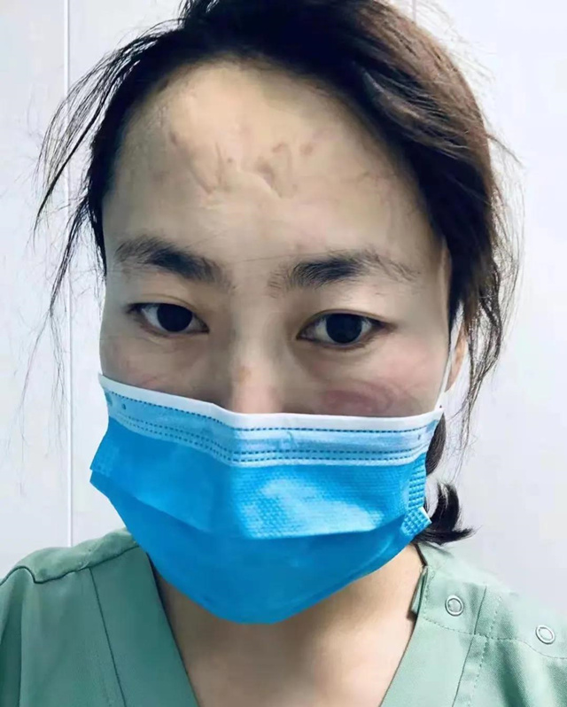 午飯時(shí)間,摘下口罩、護(hù)目鏡的張志萍露出了“真面目”,汗水浸透的衣衫,臉上被勒出來(lái)的印痕清晰可見(jiàn)!白罱颊呷藬(shù)有所上升,工作量大、任務(wù)艱巨,但我們不敢怠慢,從未放下警惕之心,一旦有疑似病例,我們會(huì)第一時(shí)間將患者安置到醫(yī)院的隔離病房,進(jìn)一步篩查與觀察!