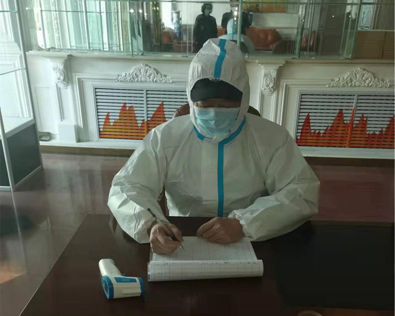 “趙建平和大家同吃同住同勞動,每天晚上要對隔離樓道和酒店周邊進行安全巡查,隔離人員來了后,對其進行危險物品清理、安全教育提示。時常忙到凌晨1點多鐘!迸c民警趙建平共同作戰(zhàn)的醫(yī)護工作人員說:“我們不僅要做好消殺、信息登記等工作,還要從心理、語言交流及生活上關懷被隔離人員,疏導其心理壓力,讓他們感到溫暖和關懷!