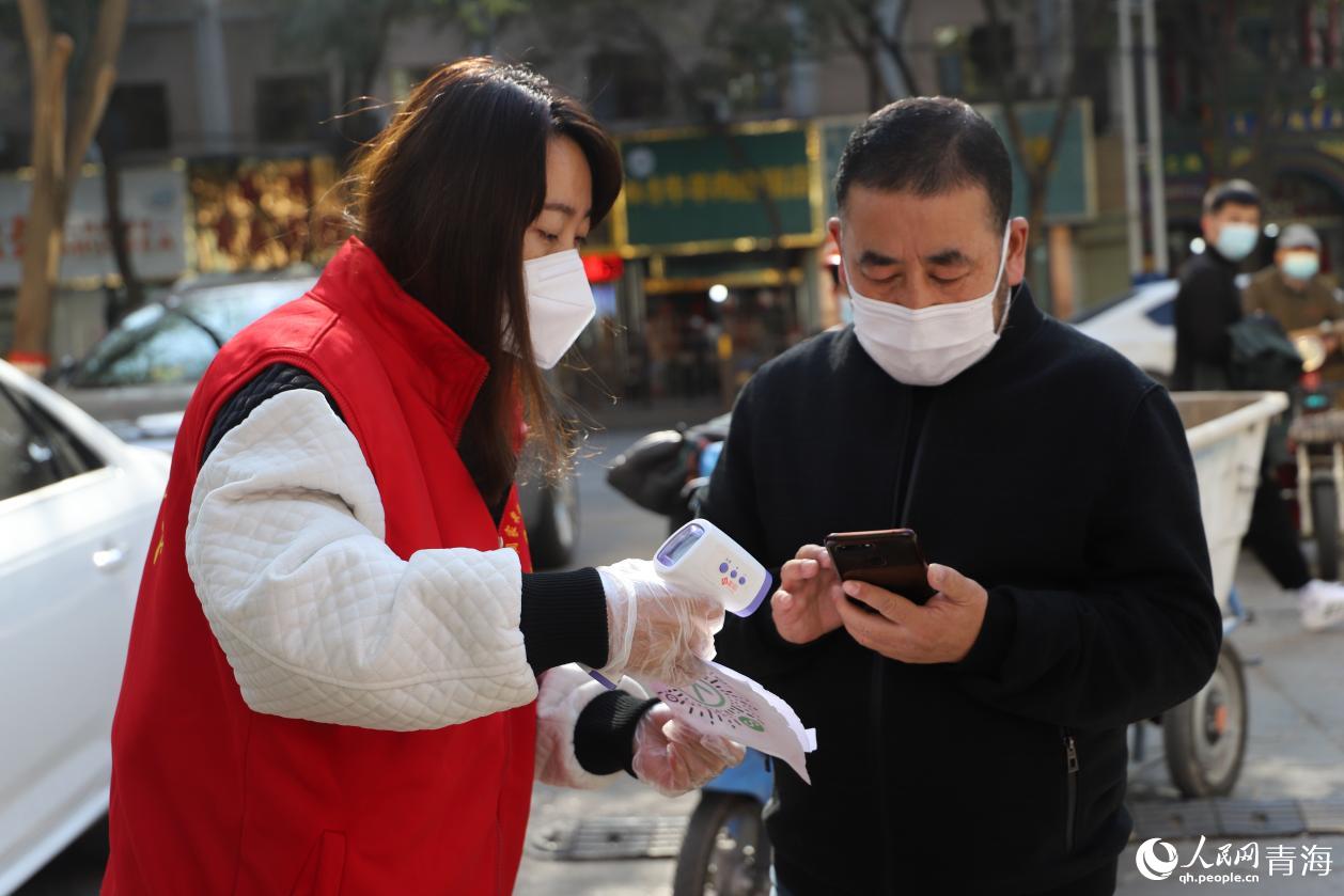 連日來(lái),位于西寧市城東區(qū)的西寧古玩城出入口成了萬(wàn)敏和同事們的“主陣地”,給出入居民測(cè)體溫、舉二維碼、登記信息……這樣的動(dòng)作每天要重復(fù)成百上千次!敖^對(duì)不能‘放過(guò)’一車(chē)一人!