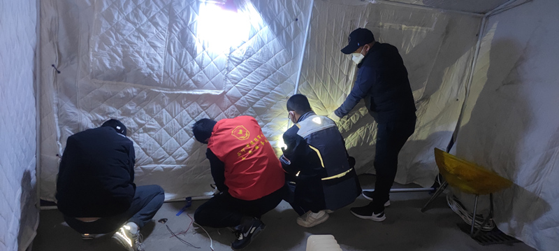 西寧市退役軍人志愿服務(wù)隊員幫助搭建帳篷。西寧市退役軍人事務(wù)局供圖
