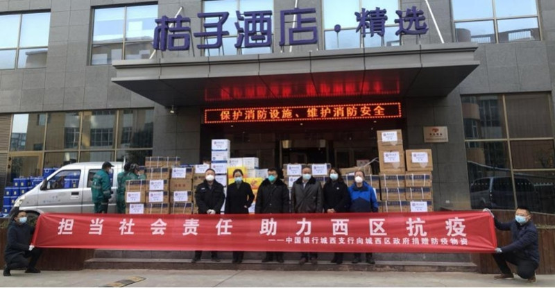 ——中國銀行西寧市城西支行向城西區(qū)政府捐贈防疫物資