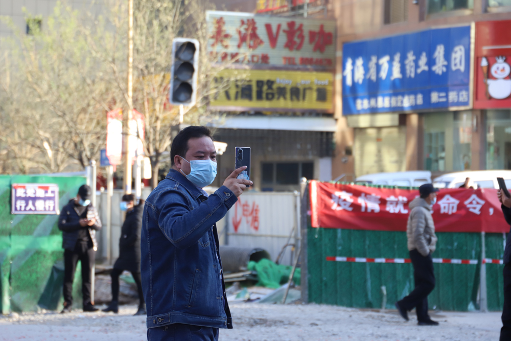 居民們紛紛拍照記錄解封時刻。人民網(wǎng) 楊啟紅攝