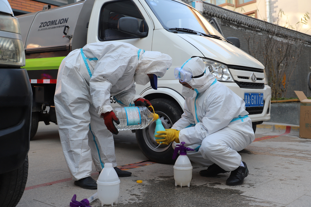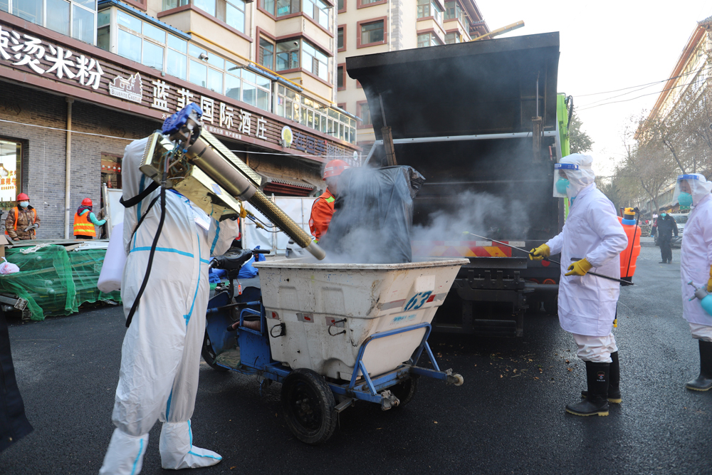 工作人員再次進行全方位消殺。人民網(wǎng) 楊啟紅攝