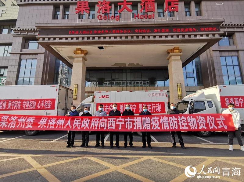 果洛州委、州政府向西寧市捐贈物資。人民網(wǎng) 楊啟紅攝