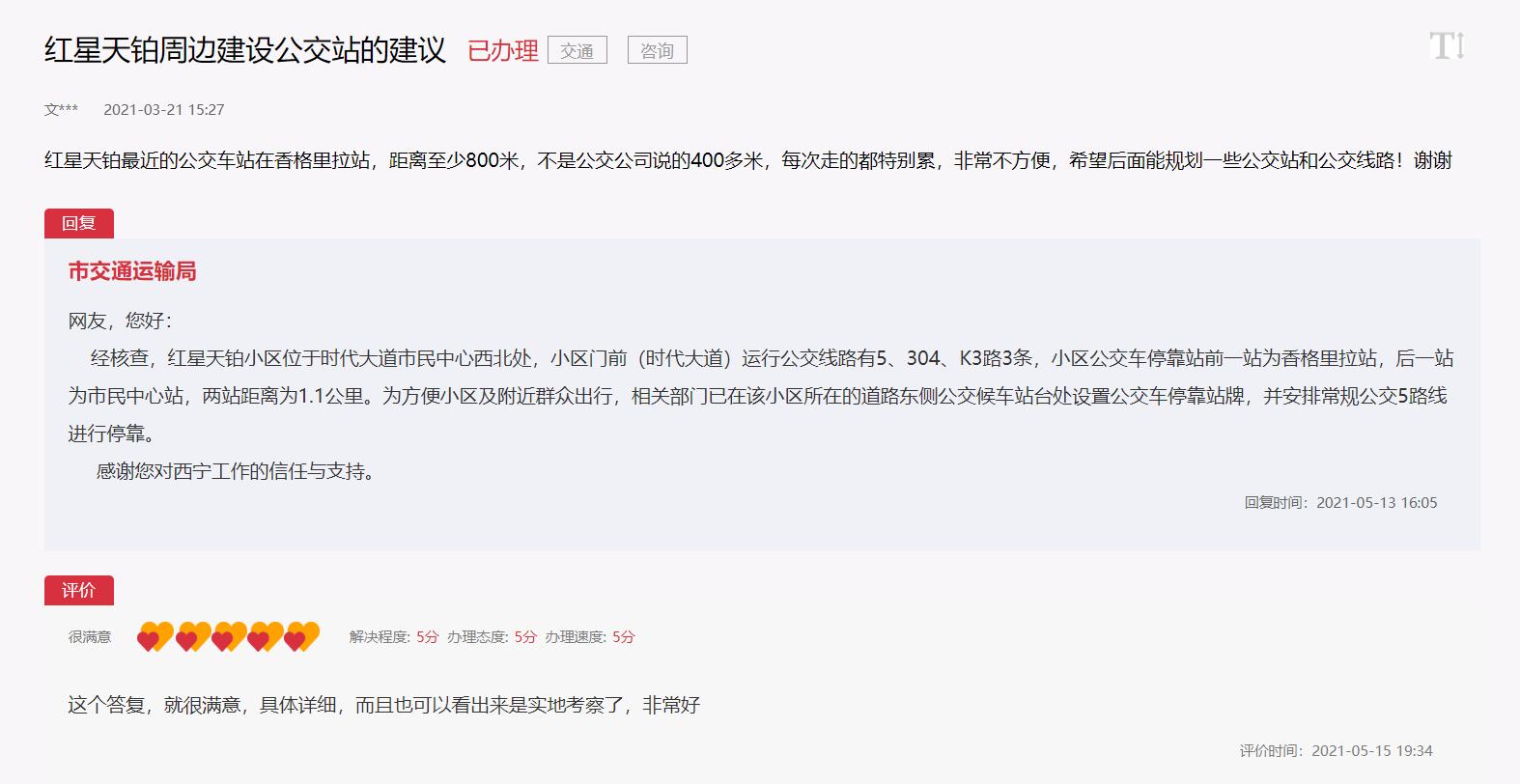 辦得好|西寧:市民出行不便留言求助 官方核實(shí)情況解決問(wèn)題