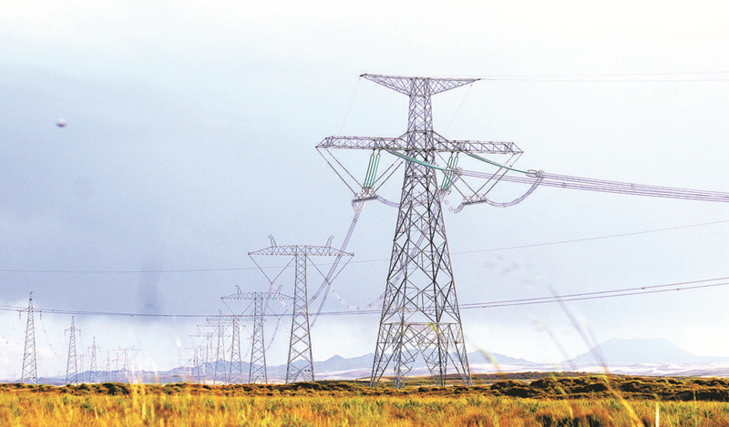 世界首條以輸送清潔能源為主的青海至河南±800千伏特高壓直流工程輸電線路。王國棟攝