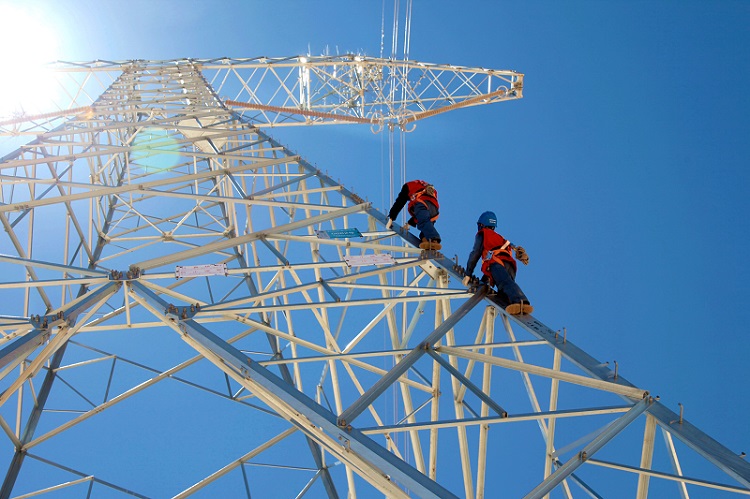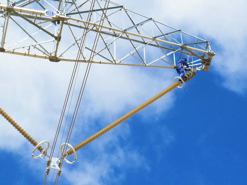 輸電作業(yè)專業(yè)人員在青藏聯(lián)網(wǎng)工程±400千伏柴拉直流輸電線路登塔消缺。汪大鵬攝