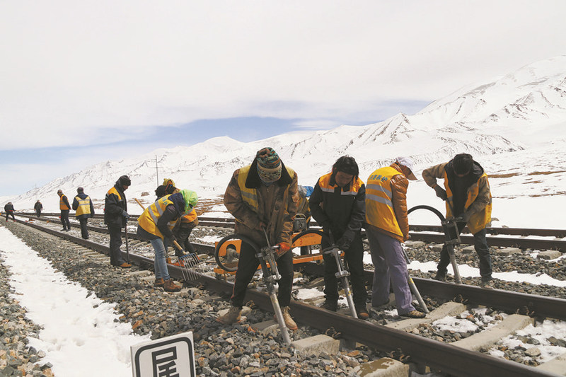 保養(yǎng)鐵路安全的鐵路人。青藏集團(tuán)公司供圖