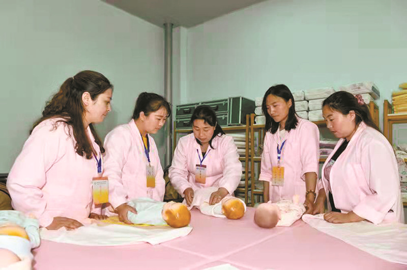 參加技能培訓(xùn),讓家政服務(wù)人員更專業(yè);ブh就業(yè)服務(wù)局供圖