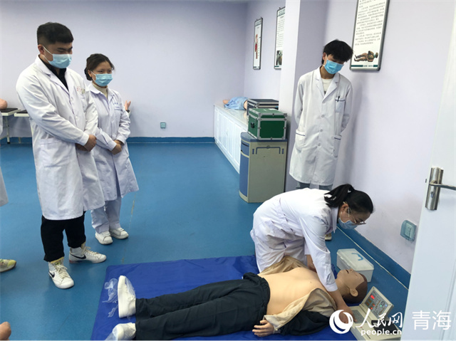 格爾木市人民醫(yī)院臨床技能培訓(xùn)中心講師講解急救知識。人民網(wǎng) 劉沛然攝