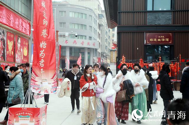 西寧市民在全新的水井巷中游覽。人民網(wǎng) 張皓芃攝