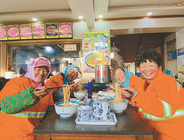 環(huán)衛(wèi)工人吃到免費的“暖心早餐”。青海日報記者 欒雨嘉 洪玉杰 攝