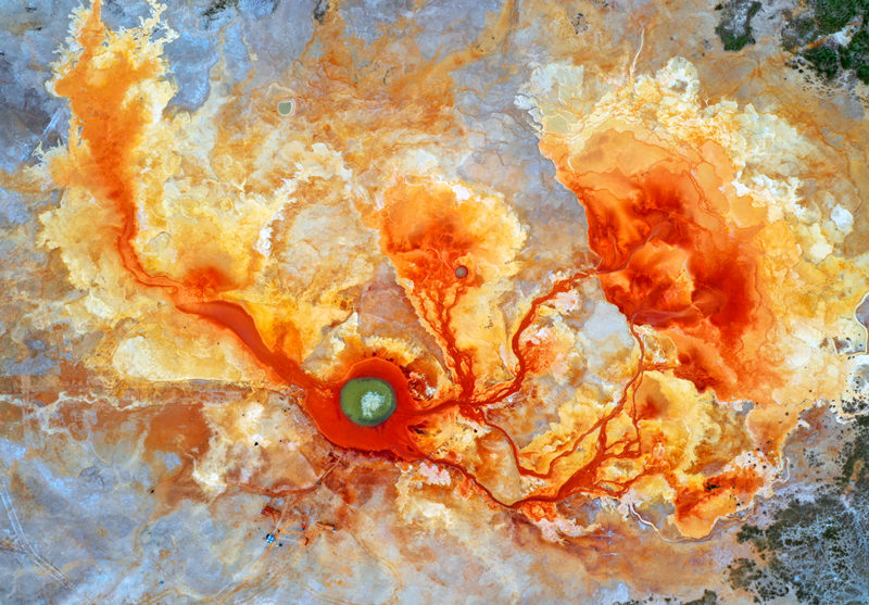 從空中俯瞰艾肯泉,泉眼與噴涌而出的泉水,組成了“大地瞳孔”的造型。雷聲攝