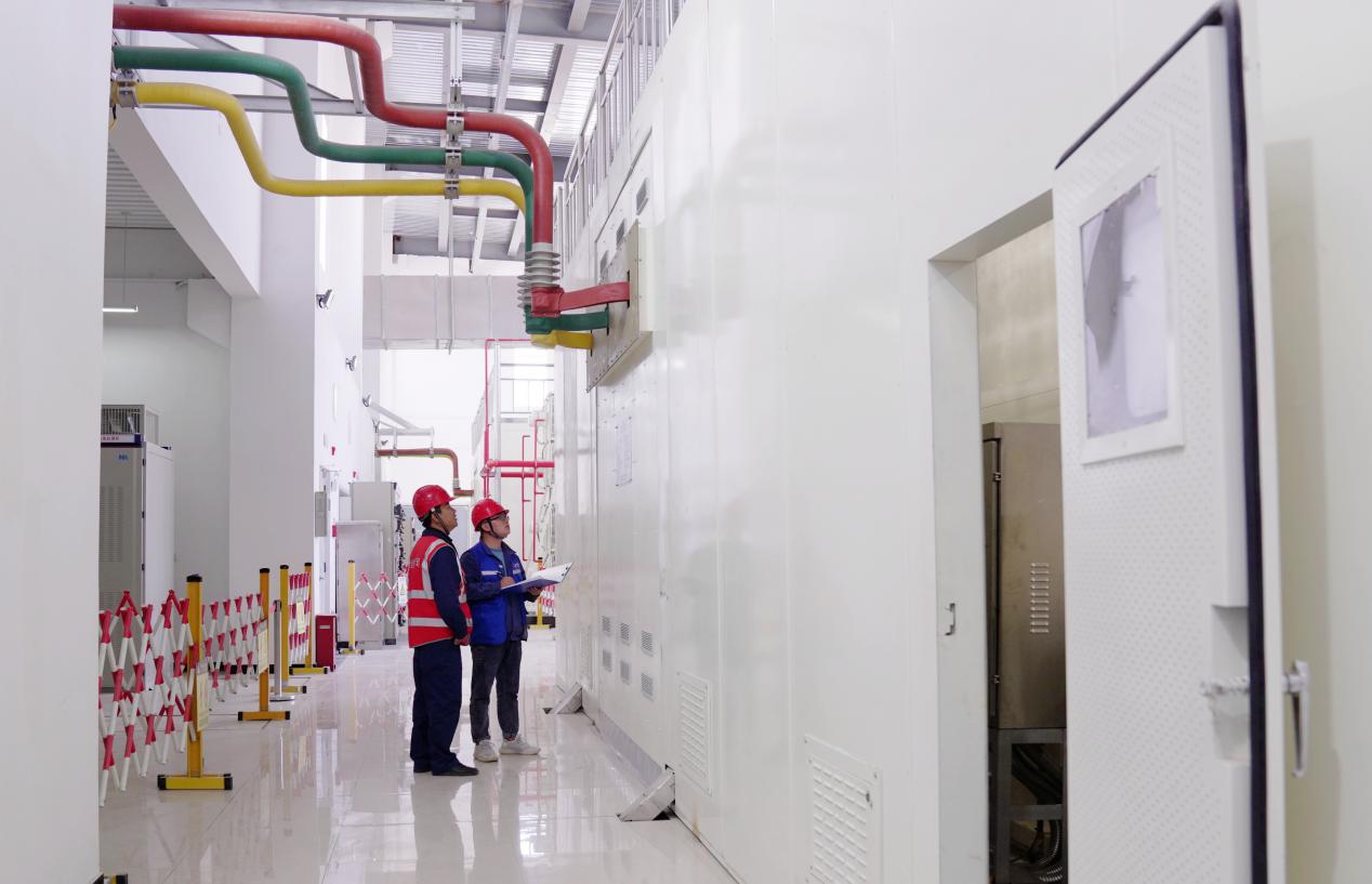 工作人員檢查調(diào)相機(jī)廠房外與調(diào)相機(jī)配合使用的電容器運(yùn)行情況。 王國(guó)棟攝
